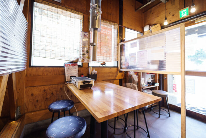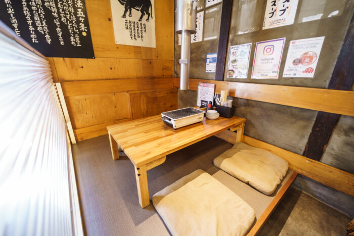 シンプルで清潔感のある木目調の4名様用テーブル席が2卓ございます。ゆっくりお肉を焼きながら、お寛ぎください。お仕事仲間や仲良しグループはもちろん、ご家族でのアットホームな焼肉会をどうぞ。